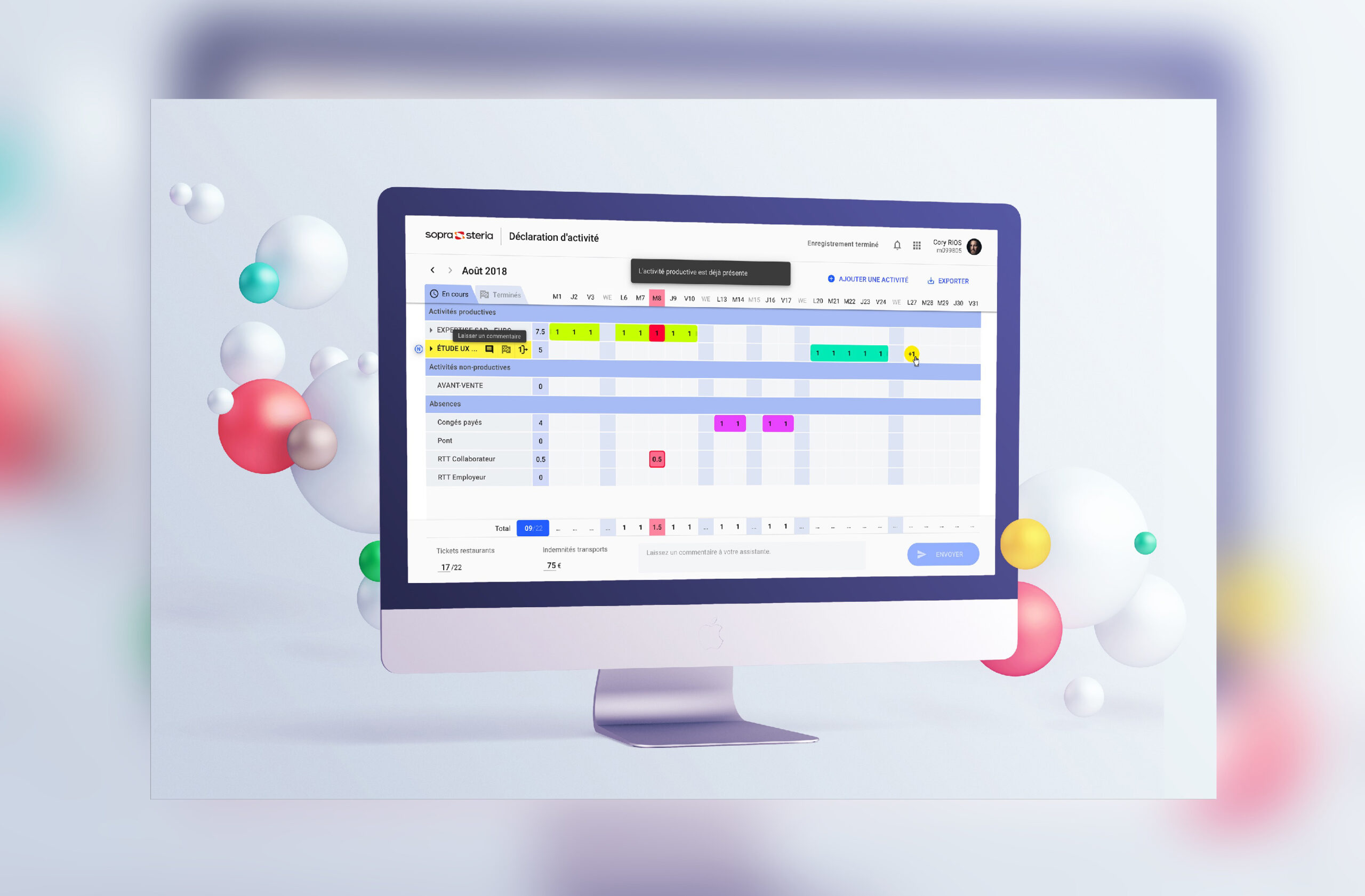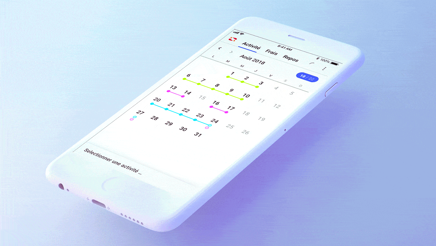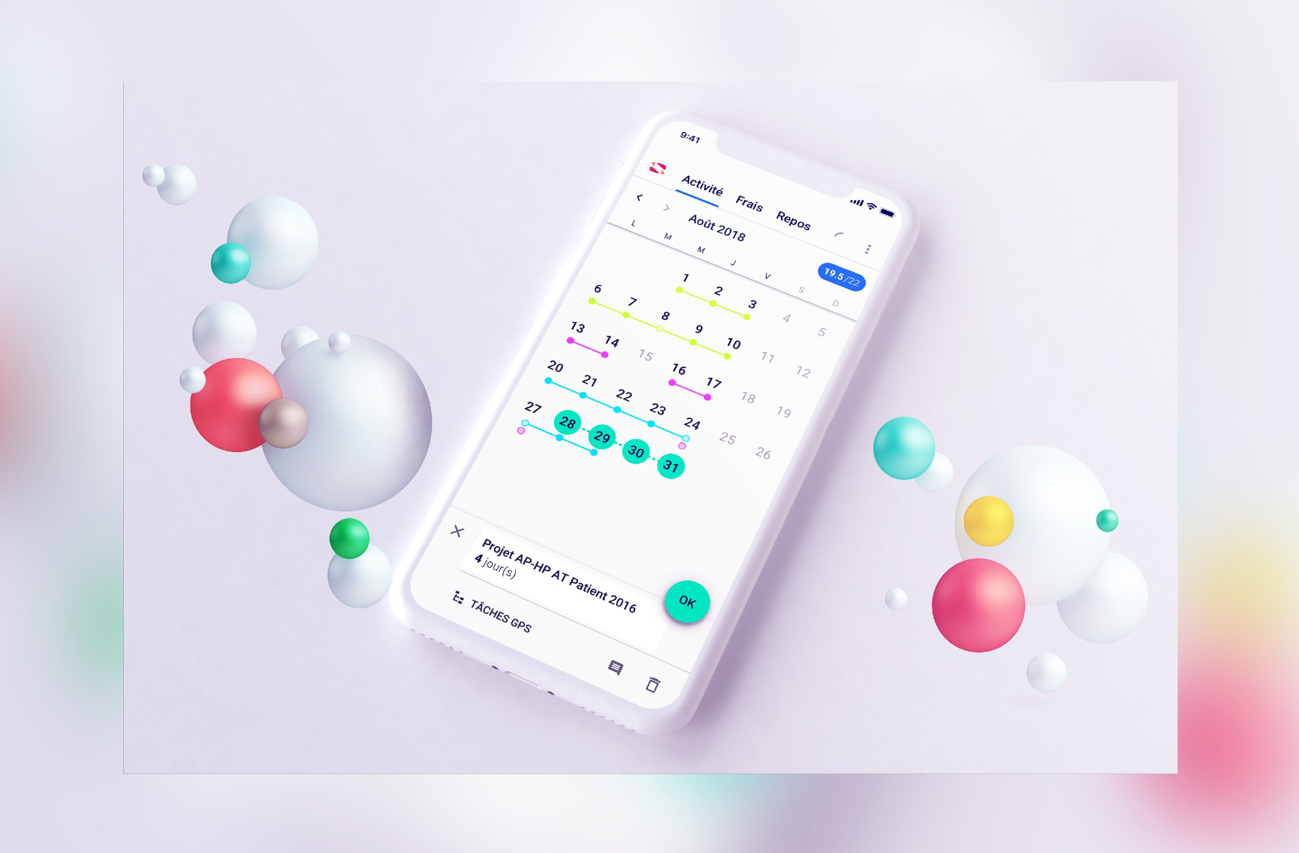 Rethinking interactions was particularly interesting, often associated with a tedious task, declaring your activity report must be simple and quick. A click system allows you to easily enter the number of half days per project in the calendar boxes provided for this purpose. Handling assists have also been added to respond to the practices observed in user testing.